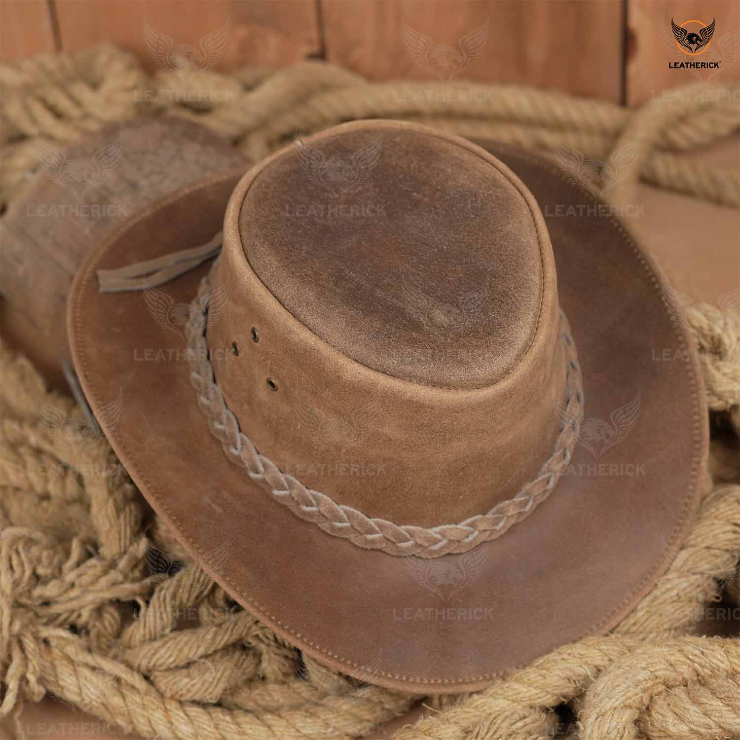 Leatherick Western Aussie Style Leather Cowboy Hat