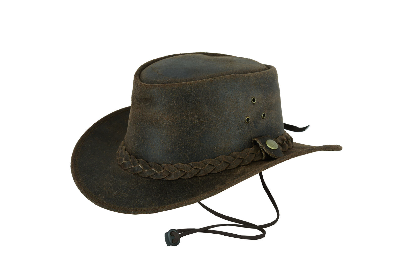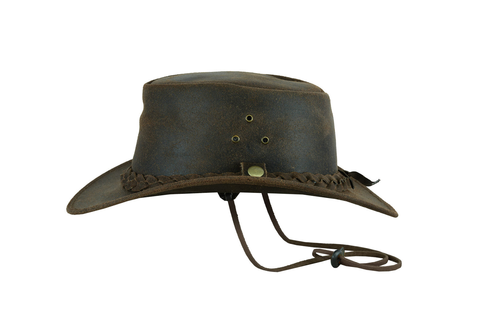 Furthermore, the hand-plaited leather braided band around the crown gives this hat a perfect, classy look. A wide hat brim keeps the sun rays & rain away from the face. This Barmah hat with a wide brim gives a tasteful, rough and tough look to your western attire. A chin strap with a plastic buckle helps to adjust the heat on the head.