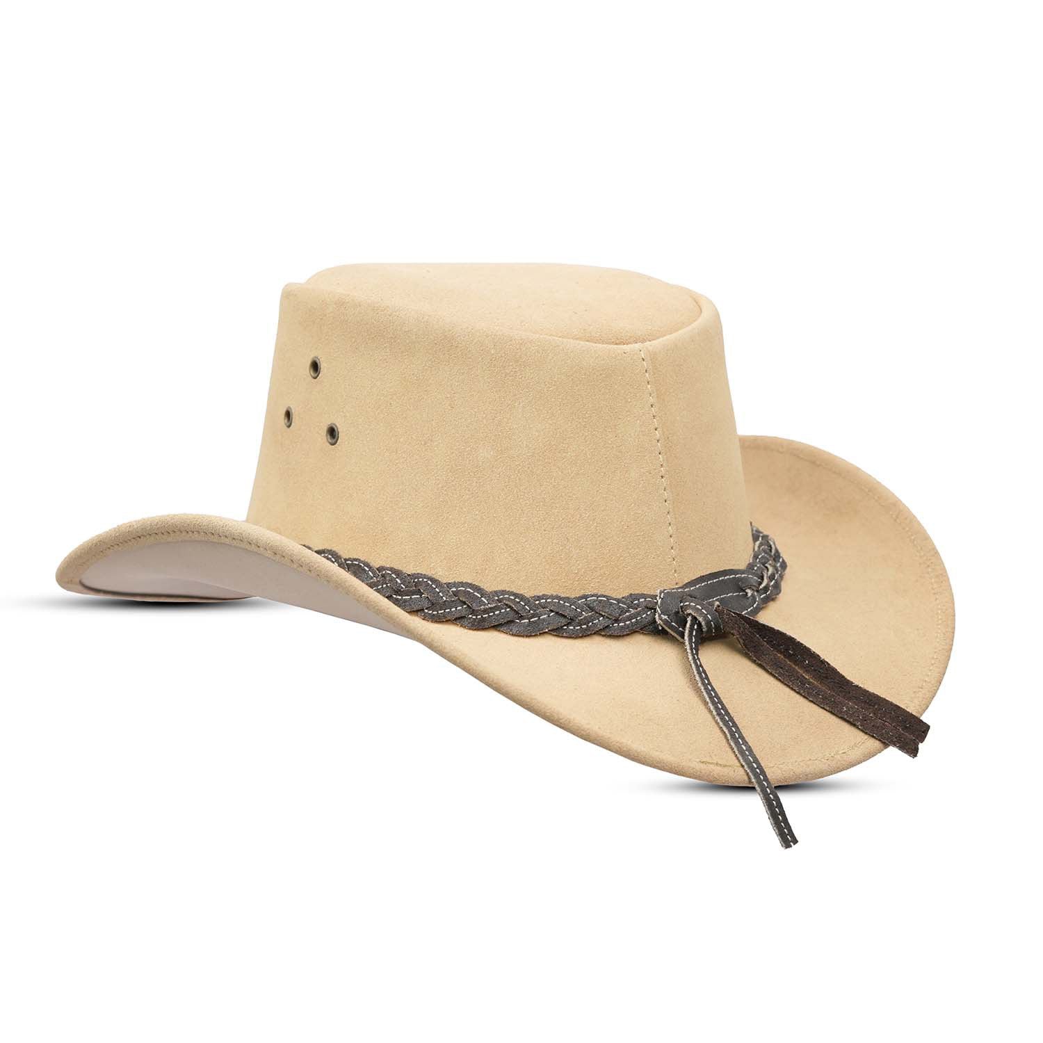 This leather outback hat has made from Suede split leather and it is stitched with premium stitching details. The design and material of the traveler hat are sure to impress. This leather is very durable and classic. Our leather bush hats for men are the best choice for outdoor activities. It has been designing with a comfortable liner that will absorb your sweat. It also provides 3 eyelets on each side for air ventilation.