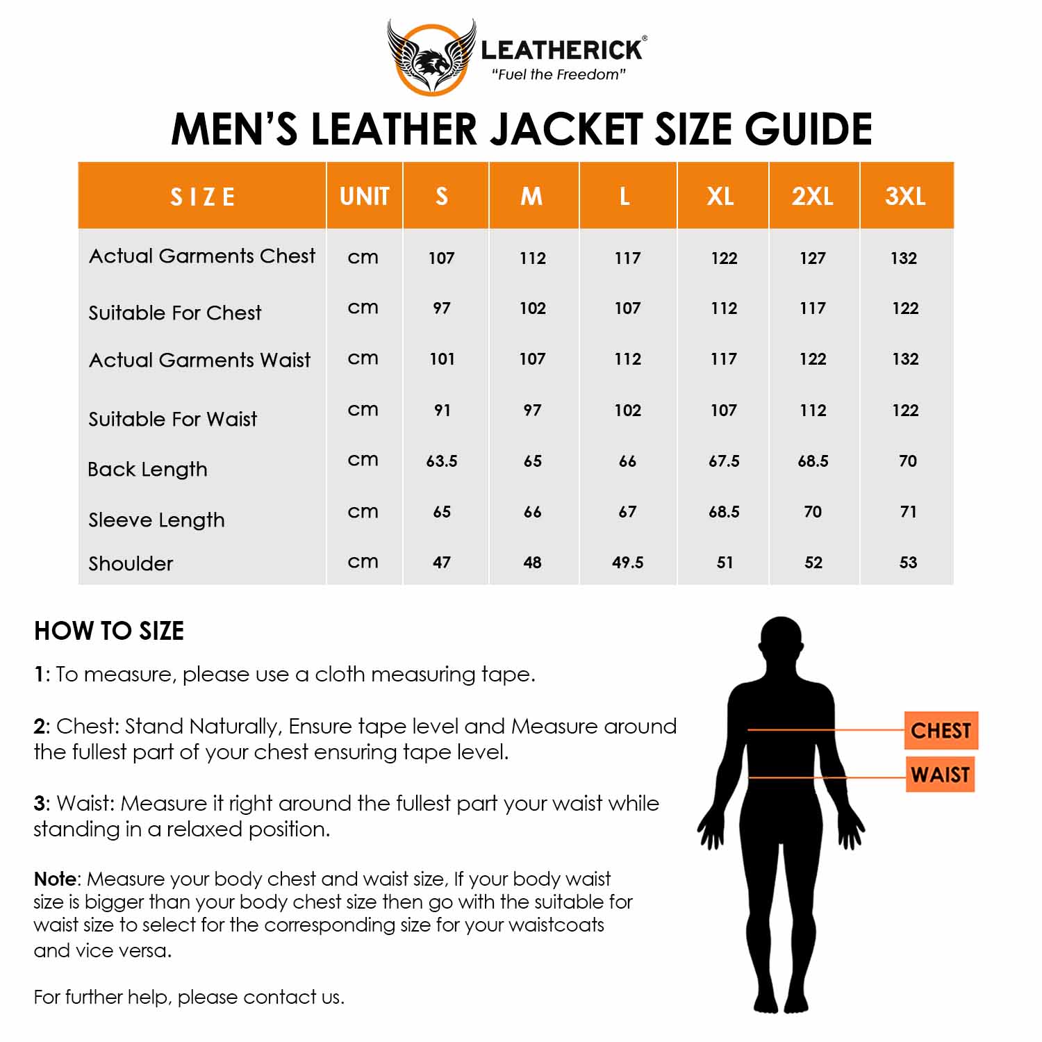 Our biker’s jackets provide 100% value for your money. Please follow the size chart guideline in the images section for a better understanding of your jacket size. Buy Confidently from Leatherick. We have served thousands of satisfied customers like you all across Europe and the UK since 2017.
