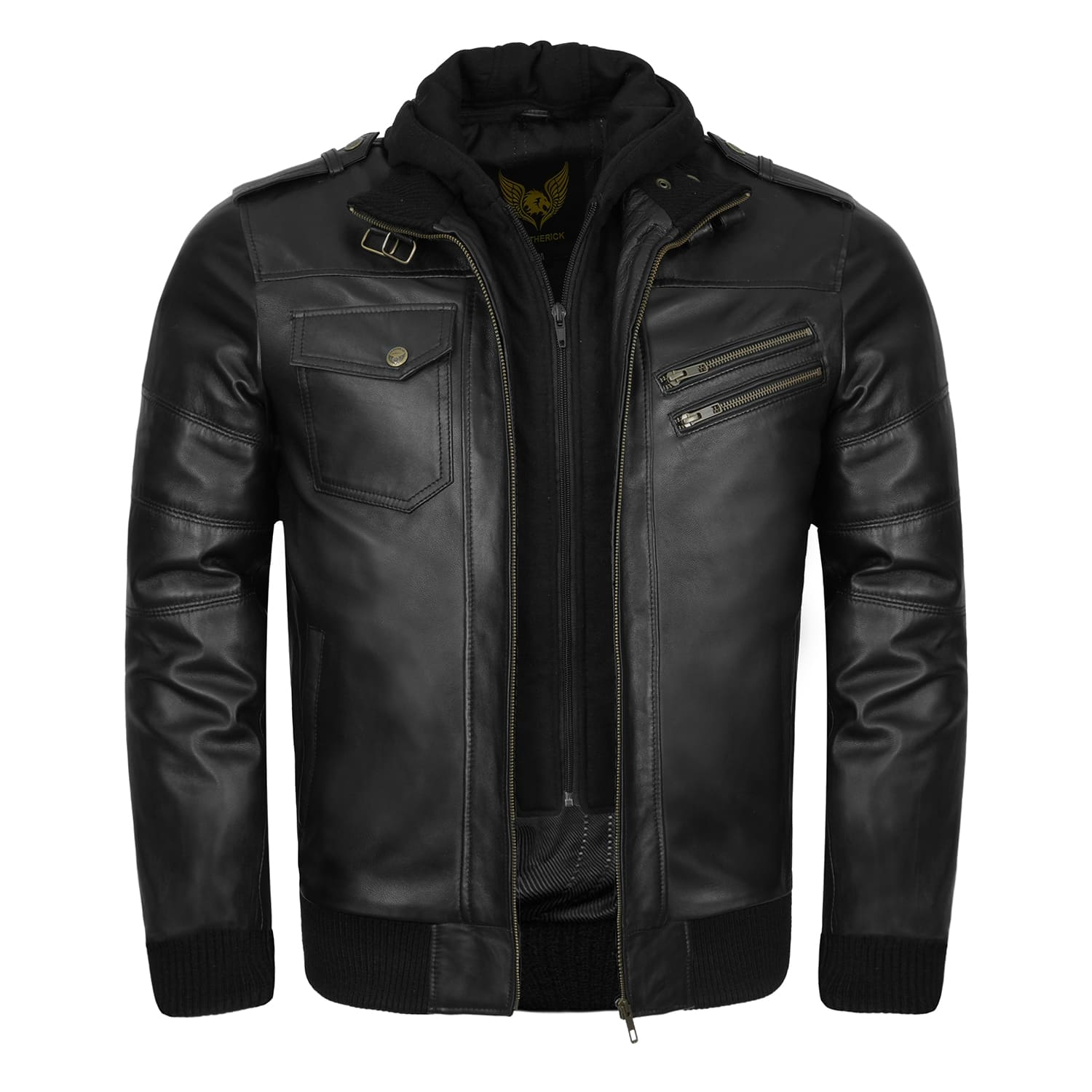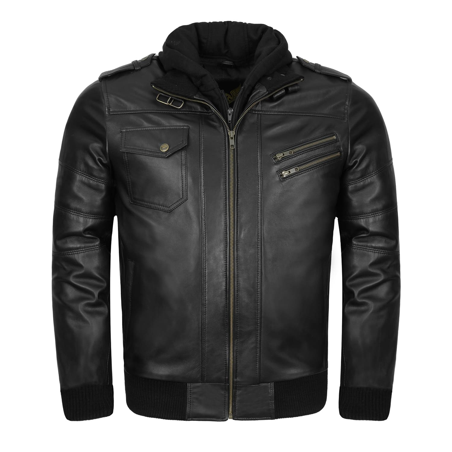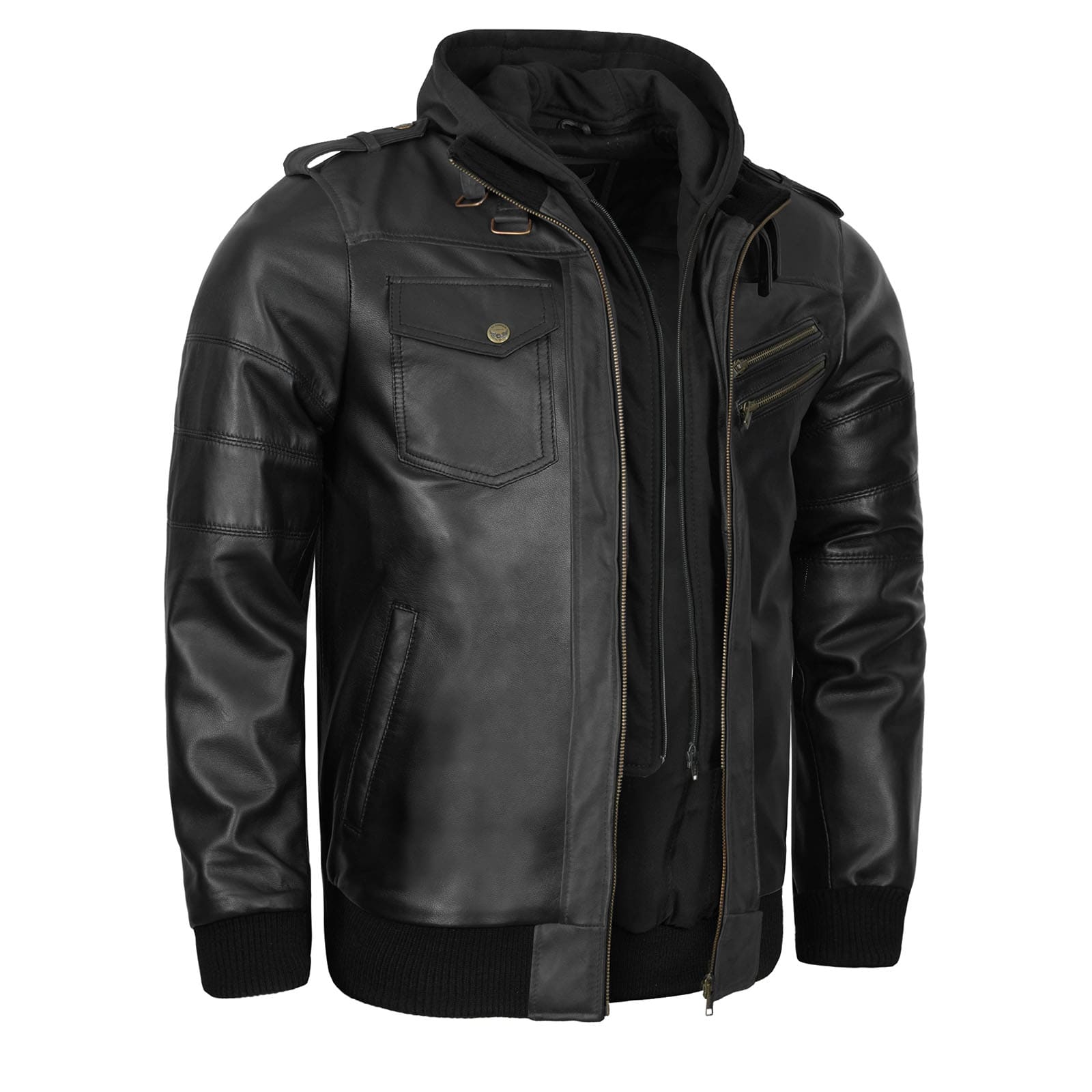 Migliora il tuo guardaroba con la Giacca in Pelle Nera con Cappuccio da Uomo Victor – la scelta perfetta tra le giacche in pelle da uomo. Realizzata in pelle di pecora nera premium, questa giacca presenta un cappuccio in pile rimovibile, una calda fodera trapuntata e dettagli esclusivi come cerniere in ottone antico, spalline e una costruzione con molteplici tasche funzionali.