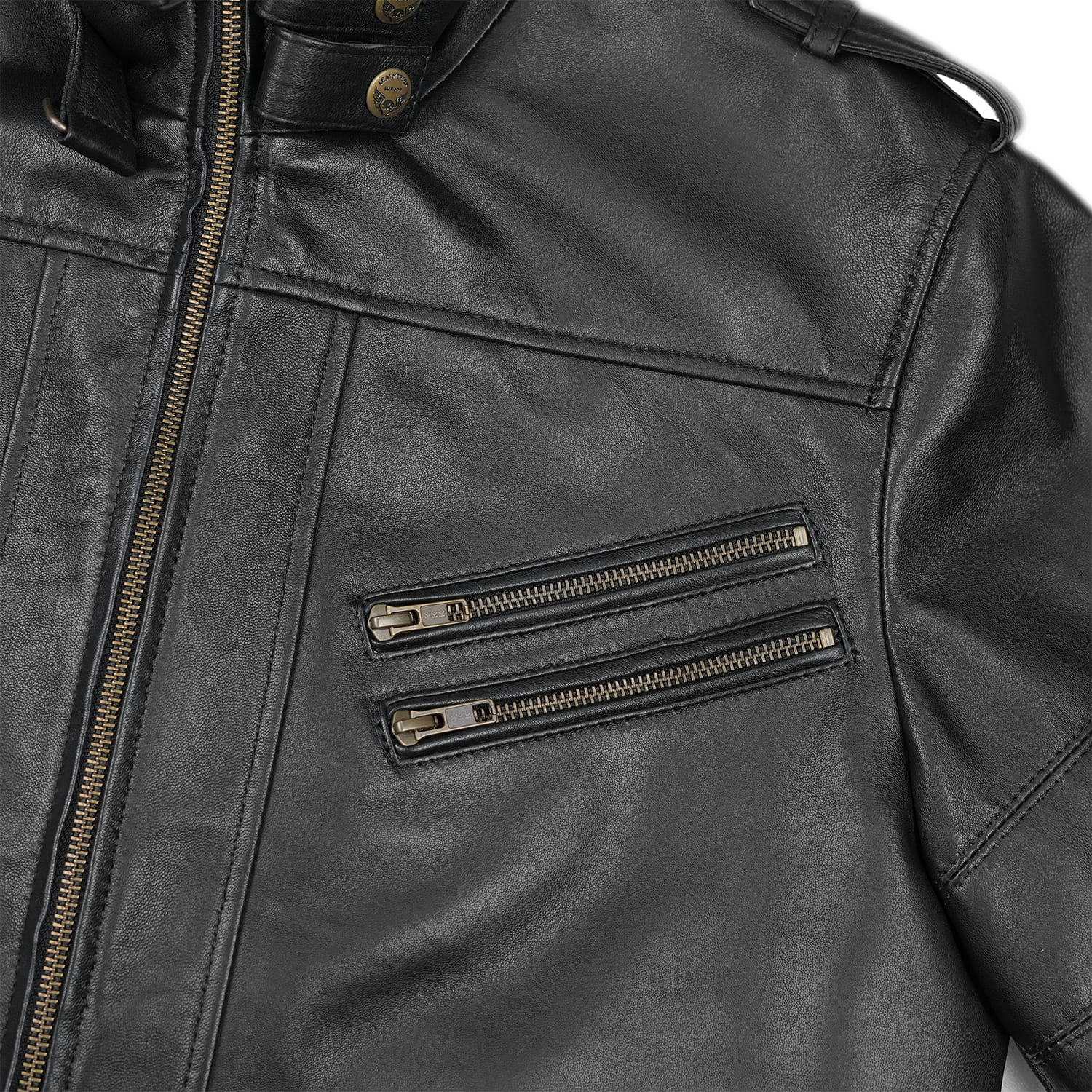- Cerniere e bottoni in ottone antico per un look classico da motociclista
